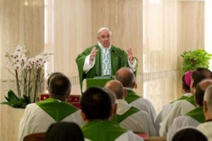 Ci sono tanti cristiani che vanno, sì, la domenica a Messa, ma poi sono indaffarati, sempre. Non hanno tempo né per i figli, neppure per giocare con i figli: è brutto, questo. “Ho tanto da fare, sono indaffarato …”. E alla fine diventano cultori di quella religione che è l’indaffaratismo: sono del gruppo degli indaffaratisti, che sempre stanno facendo … ma fermati, guarda il Signore, prendi il Vangelo, ascolta la Parola del Signore, apri il tuo cuore … No: sempre il linguaggio delle mani, sempre … E fanno del bene, ma non del bene cristiano: un bene umano. A questi manca la contemplazione. A Marta mancava quello. Coraggiosa, sempre andava avanti, portava le cose in mano, ma le mancava la pace: perdere il tempo guardando il Signore.