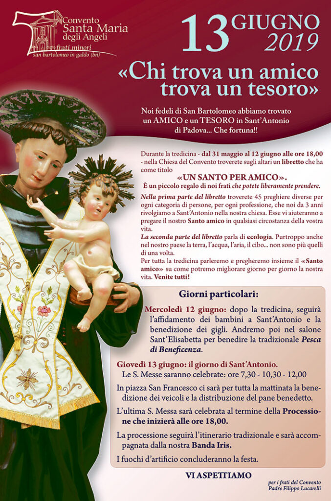 Noi fedeli di San Bartolomeo in Galdo abbiamo trovato un AMICO e un TESORO in Sant’Antonio di Padova… Che fortuna!!