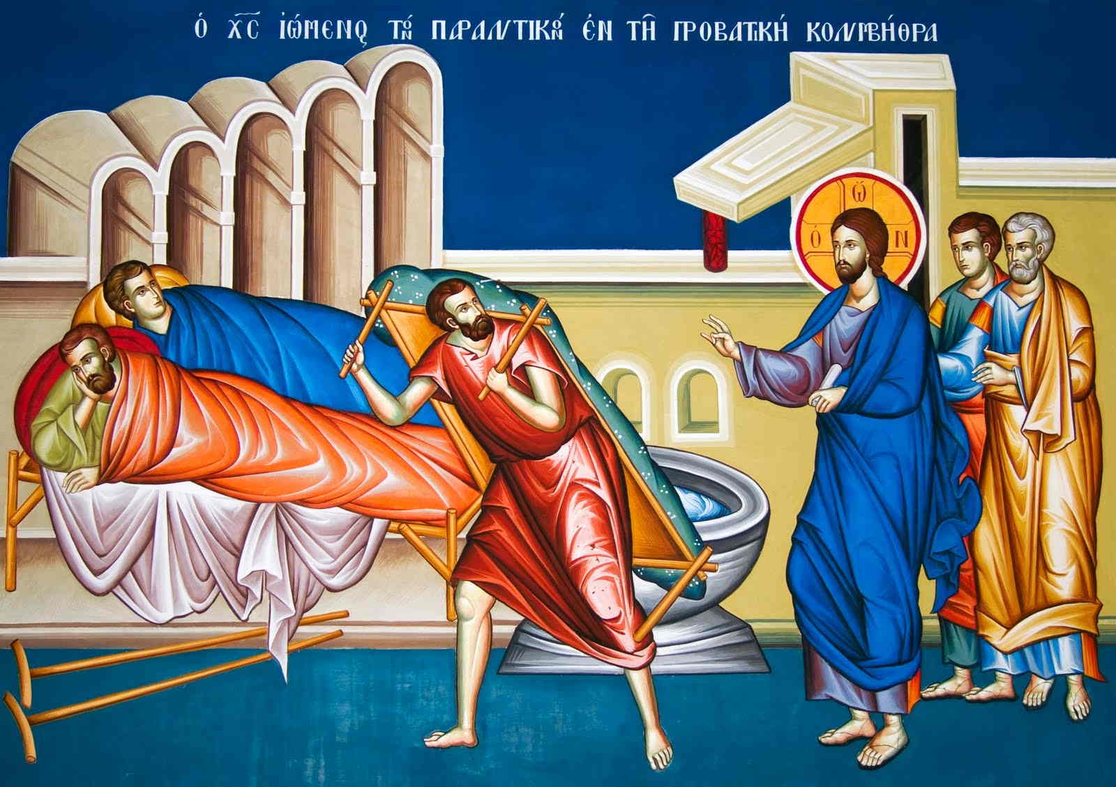Era un giorno di festa per i Giudei e Gesù salì a Gerusalemme. Vi è a Gerusalemme, presso la porta delle Pecore, una piscina, chiamata in ebraico Betzata, con cinque portici, sotto i quali giaceva un gran numero di infermi, ciechi, zoppi e paralitici. Si trovava là un uomo che da trentotto anni era malato. Gesù vedendolo disteso e, sapendo che da molto tempo stava così, gli disse: «Vuoi guarire?». Gli rispose il malato: «Signore, io non ho nessuno che mi immerga nella piscina quando l’acqua si agita. Mentre infatti sto per andarvi, qualche altro scende prima di me». Gesù gli disse: «Alzati, prendi il tuo lettuccio e cammina». E sull’istante quell’uomo guarì e, preso il suo lettuccio, cominciò a camminare. Quel giorno però era un sabato. Dissero dunque i Giudei all’uomo guarito: «È sabato e non ti è lecito prender su il tuo lettuccio». Ma egli rispose loro: «Colui che mi ha guarito mi ha detto: Prendi il tuo lettuccio e cammina». Gli chiesero allora: «Chi è stato a dirti: Prendi il tuo lettuccio e cammina?». Ma colui che era stato guarito non sapeva chi fosse; Gesù infatti si era allontanato, essendoci folla in quel luogo. Poco dopo Gesù lo trovò nel tempio e gli disse: «Ecco che sei guarito; non peccare più, perché non ti abbia ad accadere qualcosa di peggio». Quell’uomo se ne andò e disse ai Giudei che era stato Gesù a guarirlo. Per questo i Giudei cominciarono a perseguitare Gesù, perché faceva tali cose di sabato.