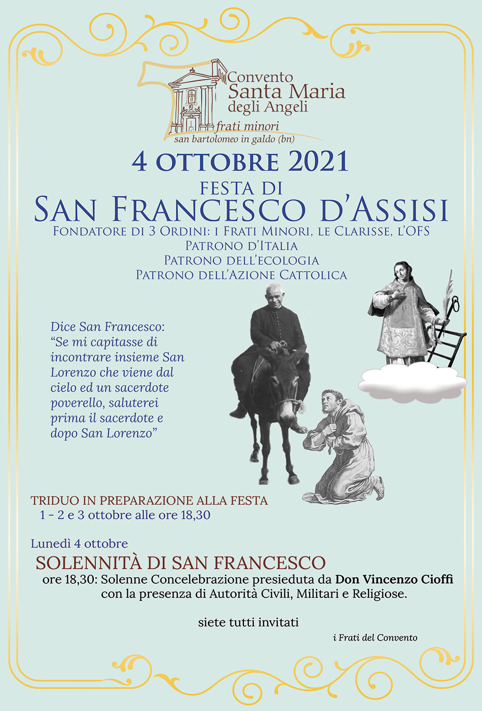 ore 18,30: Solenne Concelebrazione presieduta da Don Vincenzo Cioffi con la presenza di Autorità Civili, Militari e Religiose.